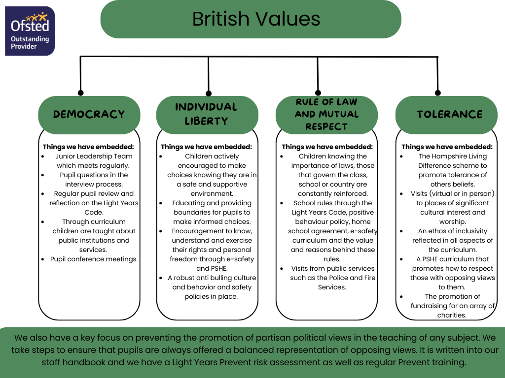The DFE have recently reinforced the need "to create and enforce a clear and rigorous expectation on all schools to promote the fundamental British values of democracy, the rule of law, individual liberty and mutual respect and tolerance of those with different faiths and beliefs".