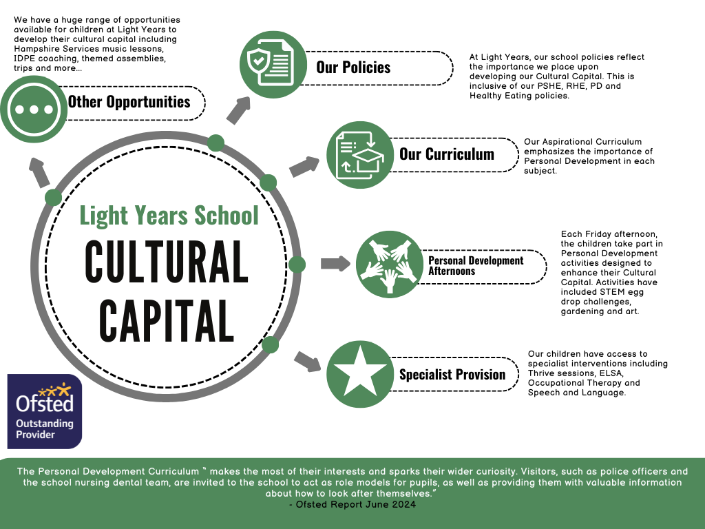 We recognise the importance of cultural capital in shaping knowledgeable and informed citizens. Our lessons and initiatives provide pupils with the essential knowledge they need to navigate the world effectively. To enrich their understanding, we host British Values-themed assemblies and facilitate visits to various places of worship, both virtually and in person. Collaborations with Hampshire Library Services serve to promote diversity and inclusion, ensuring our pupils are equipped with broad perspectives. The Junior Leadership Team actively participates in school decisions, amplifying the voices of our students and reinforcing their understanding of democratic principles.