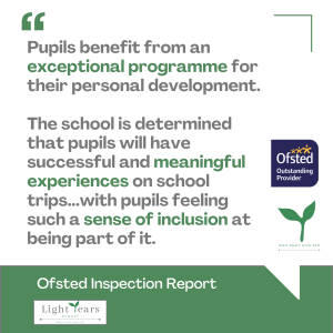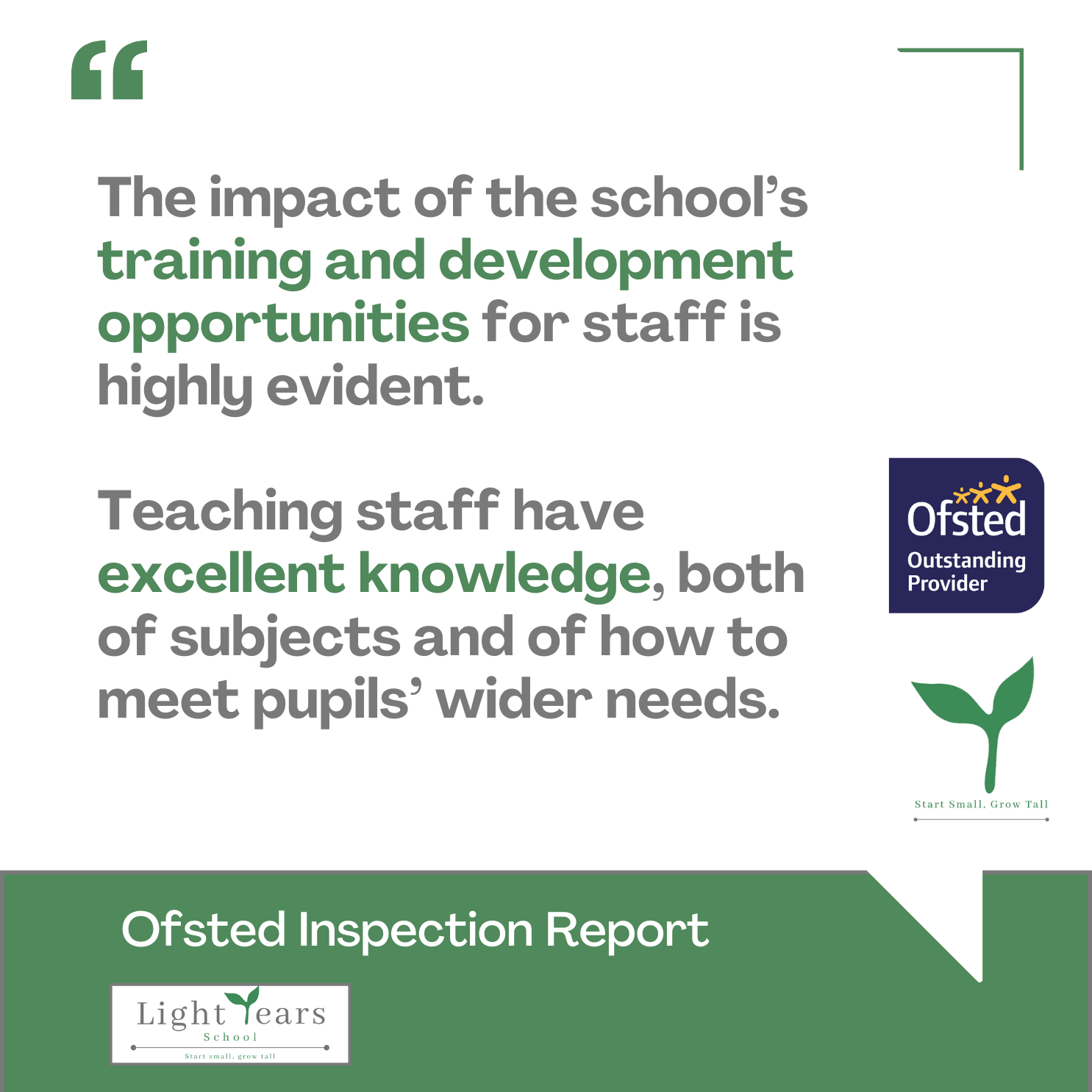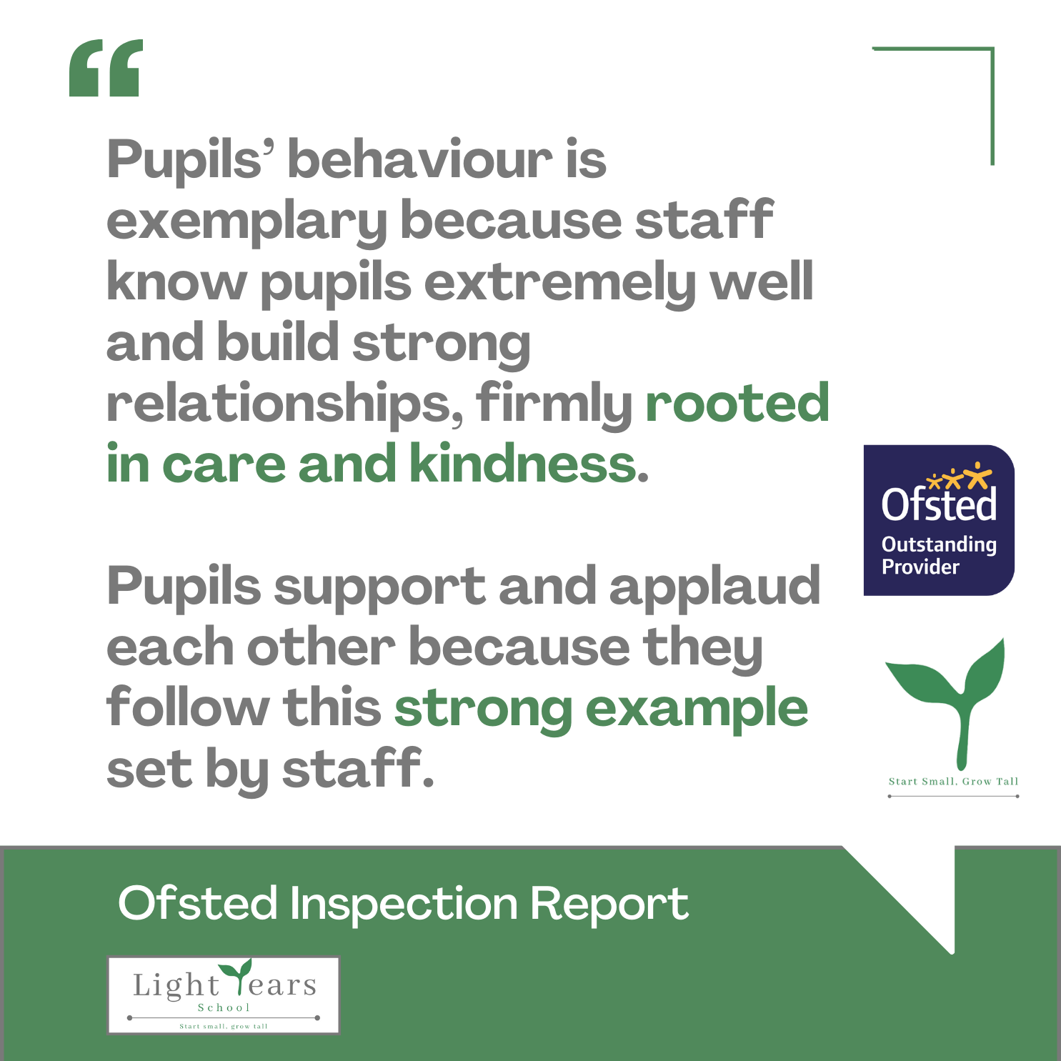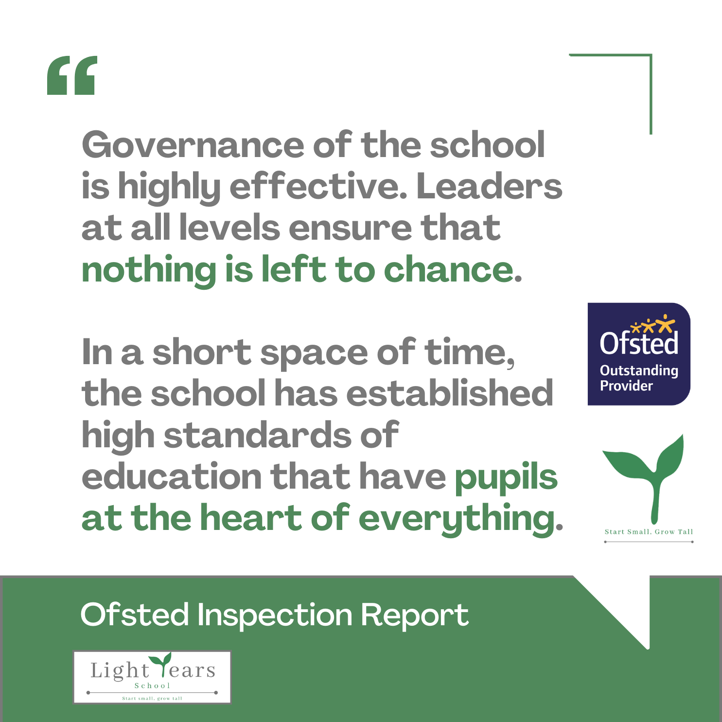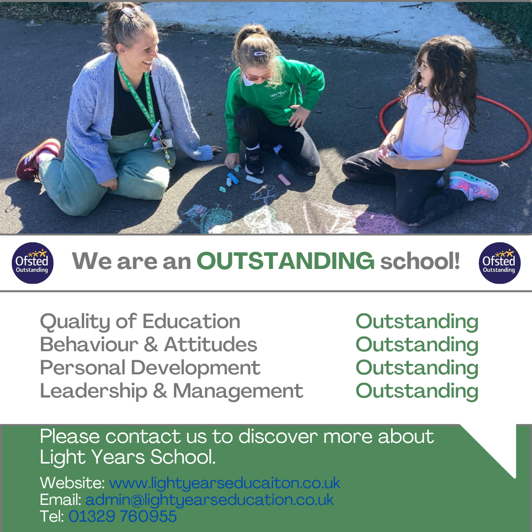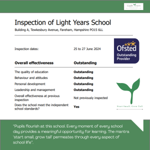 Light Years School is proud to share that we have been graded Outstanding in all areas in our first full Ofsted inspection. We are all immensely proud of this achievement and wish to thank all of our pupils, families and staff for their huge contributions to our school's journey so far. We are delighted that Ofsted saw our wonderful school in the same way we all do.